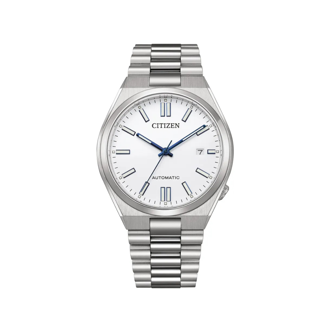 Montre Citizen - Collection Tsuyosa - Mouvement automatique, trois aiguilles, date, composée d'un boîtier acier de 40 mm, d'un cadran blanc et d'un bracelet acier.