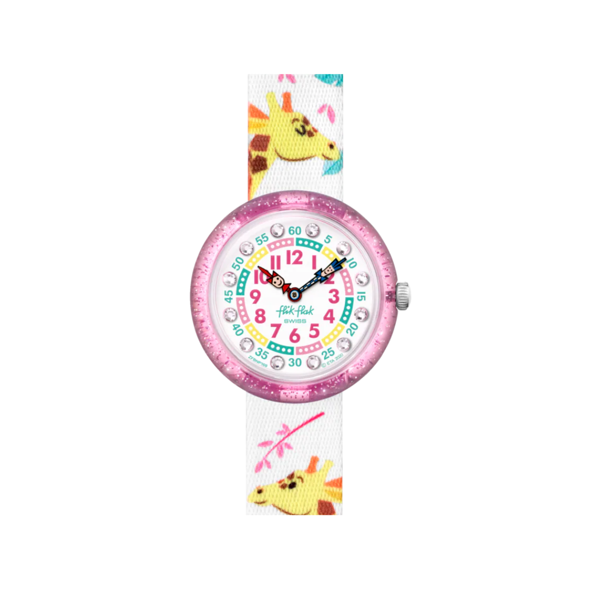 En route pour une aventure palpitante avec GIRAFFIC PARK, une montre pour enfants relevée de cristaux brillants sur le cadran. Élégante et jolie !