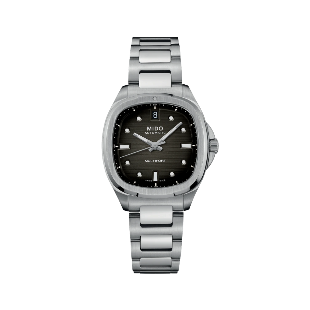 MIDO enrichit sa collection à succès d’une nouvelle taille. Aux côtés de l’existante Multifort TV Big Date en 40 mm, et sans rien perdre de sa silhouette culte de forme TV, la Multifort TV 35 – pour sa taille de 35 x 34,2 mm – fait une entrée remarquée avec une version fascinante aux dimensions parfaitement polyvalentes. Signe distinctif : une épaisseur réduite à son maximum qu’elle doit à son mouvement automatique Calibre 72, réputé pour sa finesse. Intemporelle, chic et captivante !