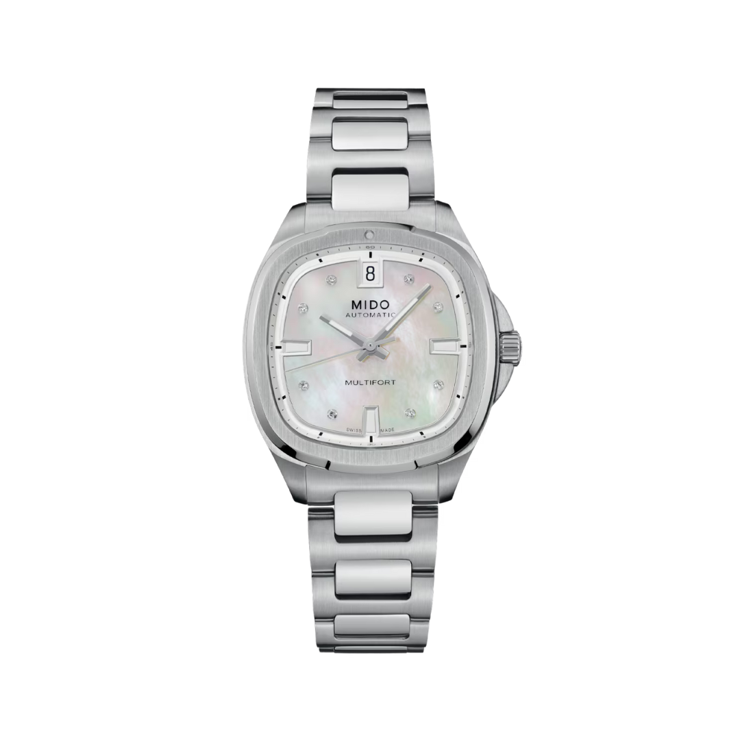 MIDO enrichit sa collection à succès d’une nouvelle taille. Aux côtés de l’existante Multifort TV Big Date en 40 mm, et sans rien perdre de sa silhouette culte de forme TV, la Multifort TV 35 – pour sa taille de 35 x 34,2 mm – fait une entrée remarquée avec une version fascinante aux dimensions parfaitement polyvalentes. Signe distinctif : une épaisseur réduite à son maximum qu’elle doit à son mouvement automatique Calibre 72, réputé pour sa finesse. Intemporelle, chic et captivante !