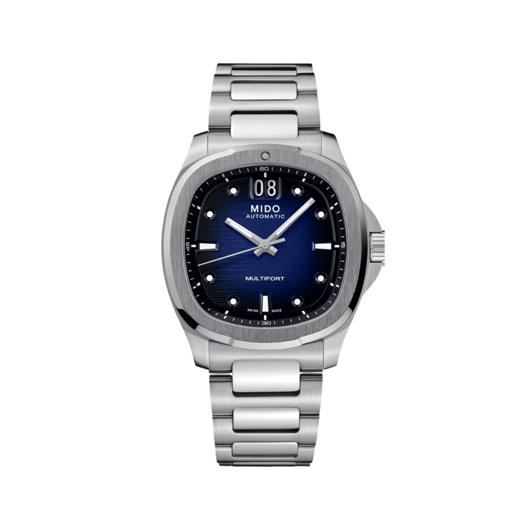 Flashback réussi ! Né de l’extraordinaire histoire de MIDO, le boîtier de forme TV revient sur le devant de la scène, pour une Multifort TV Big Date aussi intense que précise dans les moindres détails. Le design moderne et dynamique de cette montre suisse est souligné par un saisissant cadran au brossage horizontal et surtout sa grande particularité: la BIG DATE à 12h.