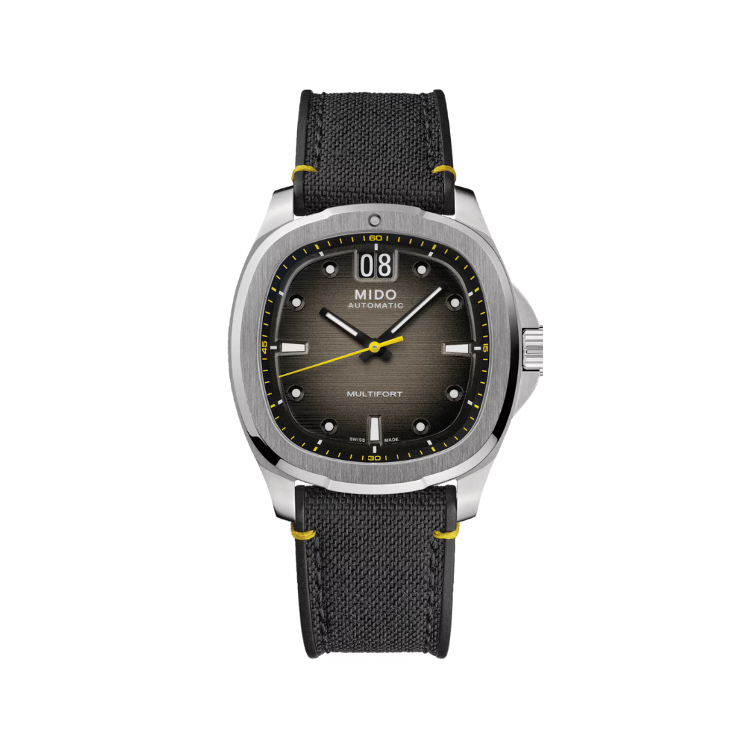 Flashback réussi ! Né de l’extraordinaire histoire de MIDO, le boîtier de forme TV revient sur le devant de la scène, pour une Multifort TV Big Date aussi intense que précise dans les moindres détails. Le design moderne et dynamique de cette montre suisse est souligné par un saisissant cadran au brossage horizontal et surtout sa grande particularité: la BIG DATE à 12h.
