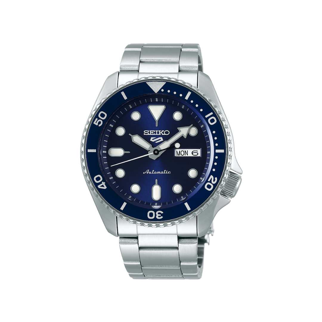 Exprimez votre style sportif avec cette montre automatique Seiko 5 Sports. Le cadran, bleu, tout comme la lunette, accueille un guichet jour date à 3h ainsi que le tout nouveau logo Seiko 5 à 12h. Intégralement en acier inoxydable, cette montre est étanche à 100 mètres. Ce garde-temps est animé par un mouvement automatique que vous pourrez admirez à travers le fond de boîte vissé et transparent.