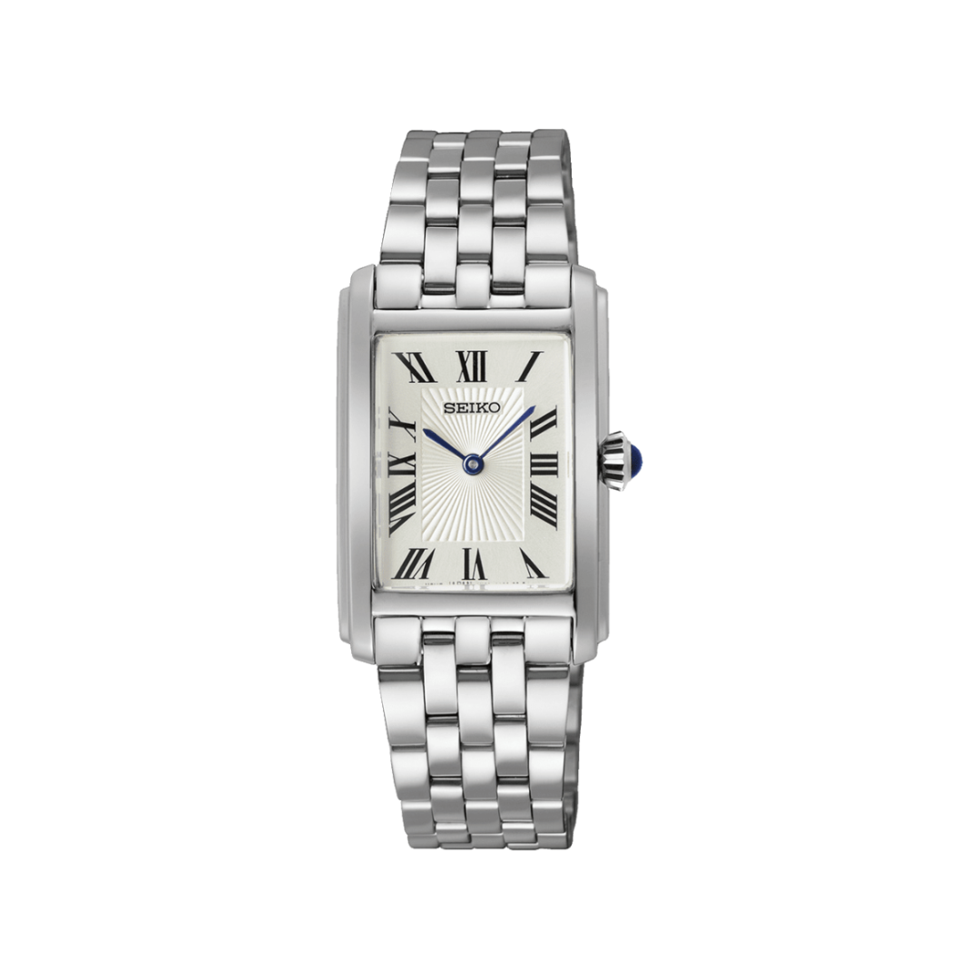 Idéale pour compléter vos tenues habillés la montre SWR083P1 se distingue par l'élégance de son boîtier et son cadran soleillé et satiné. Cette montre en acier inoxydable est composée de chiffres romain et d'un joli cabochon bleu. Élégante et robuste, la montre a une étanchéité de 5 bar et est équipée d'un verre Hardlex bombé.
