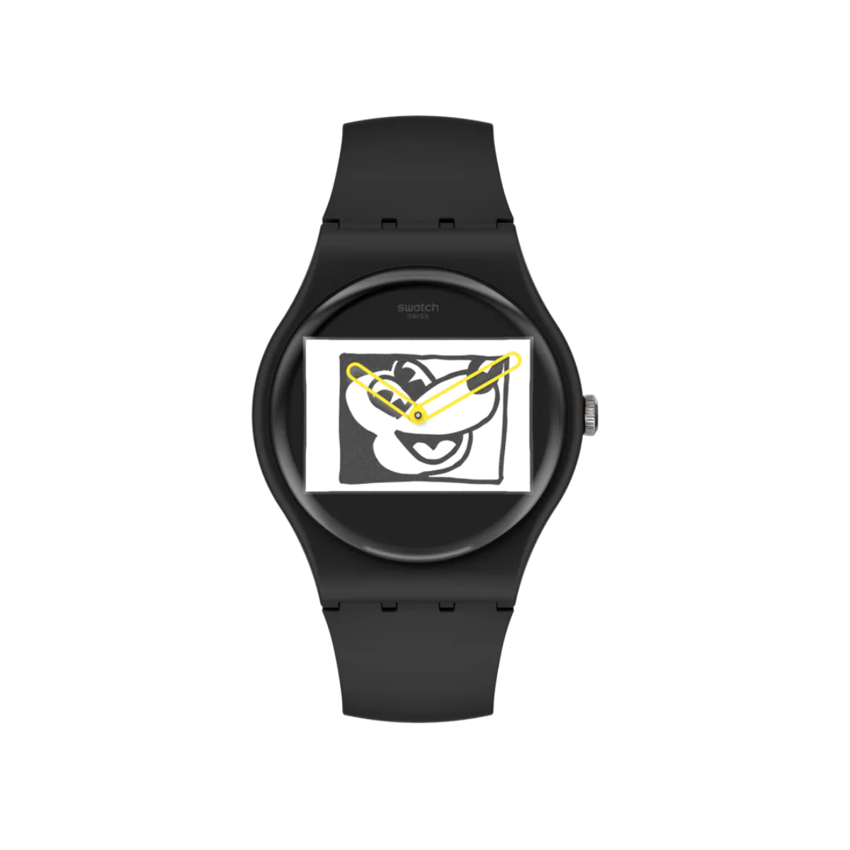 SUOZ337Swatch Mickey Blanc Sur Noir Keith Haring