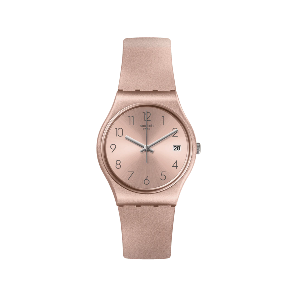 La PINKBAYA, rose pâle, est dotée d’un bracelet en plastique métallisé qui ne passe pas inaperçu. Son cadran rose brossé assorti est muni d’une fenêtre de date pratique à 3 heures.