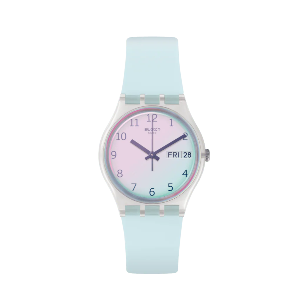 L’ULTRACIEL bleu ciel a la pureté d’un ciel sans nuage. Son bracelet bleu clair fait joliment ressortir le blanc de son cadran, orné d’un verre Swatch Solar Spectrum bleu clair.